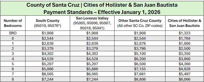 PS1 Payment Standards for Santa Cruz County and the cities of Hollister and San Juan Bautista